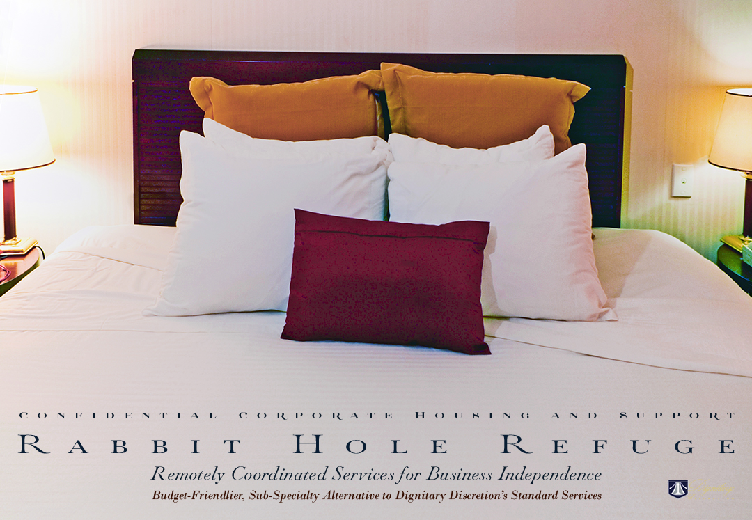 In accordance with concepts of low-profile safehouse travel, facilities are outsourced, without identifying the Dignitary Discretion name to the local providers, and specific facilities are not identified in advance. Concepts of quality specifications and satisfaction guarantees are adapted for reassurances.
